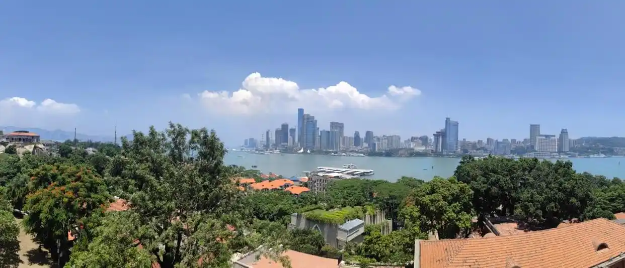 这是2025年8月23日在厦门鼓浪屿八卦楼三楼露台拍摄的风景。新华社记者 鱼澜 摄 11月的厦门,三角梅依然盛开。穿梭在街头巷尾,处处可见“金鸡”元素,电影中的场景与现实的风景在此交汇——这座海上花园城市,与“金鸡”结缘,成为一个魅力十足的电影之城。